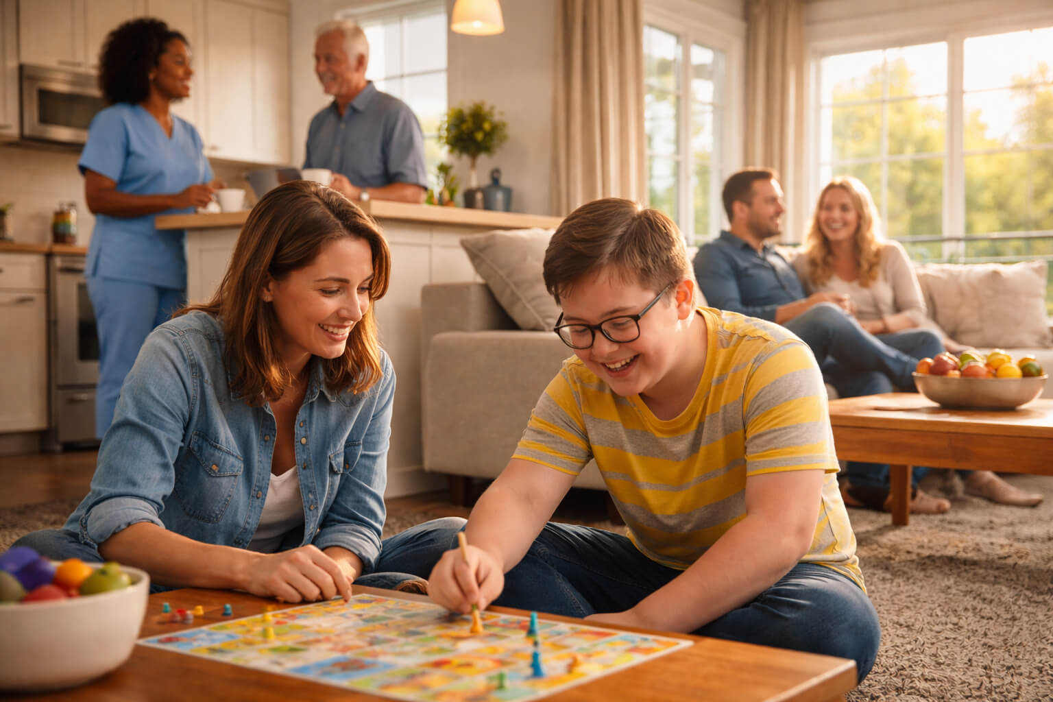 There’s help getting ready, support in the bathroom, someone there to guide—not rush. Breakfast gets handled without stress. The day starts calmer.